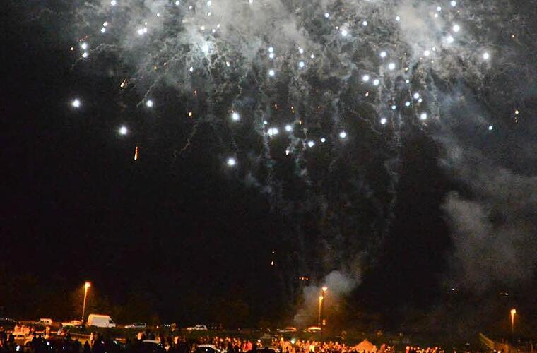 Mitunter schien der Himmel wie von Brillanten funkelnd, ein anderes Mal wie von einem Farbenrausch erhellt. "Glühwürmchen" schlängelten sich mit feurigem Schweif in die Höhe. Der "Blumenkohl" zeichnete unzählige glitzernde Rosetten in den Himmel über Schlüsselfeld.