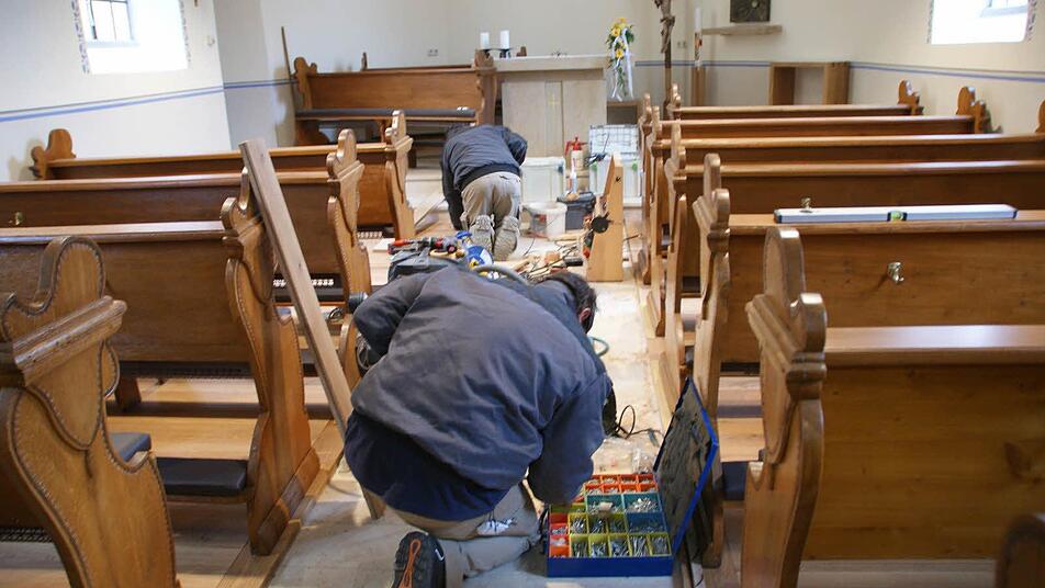 Eingebaut wurde ein neues Holzpodest aus Eiche. Die vorhandenen historischen Kirchenbänke wurden restauriert und die Knie- und Sitzbänke mit schwarzem Kunstleder überzogen. Der Mittelgang wurde mit Juramarmorplatten versehen.