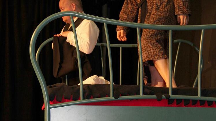 Längst gingen die Proben in die heiße Phase. Ja, es knisterte und knallte schon gewaltig. "Jetzt geben wir unserem flotten ,Dreier‘ noch den letzten Schliff", meint Stephan Bach: "Nein, Lampenfieber habe ich bislang nicht, das kommt erst am Abend vor der Premiere." So läuft der Countdown zur feierlichen Eröffnung des "Theaters im Gärtnerviertel". Wobei die erste Station auf der Tour der Wanderbühne "Betten Friedrich" ist. Schließlich geht's am 2. Oktober gleich zum Auftakt um ein prickelndes Thema: den Seitensprung einer Frau, die zwischen zwei Männern steht. Am "Tatort" spüren alle Beteiligten der drängenden Frage nach, "wer mit wem wann wo und wieso schlief".