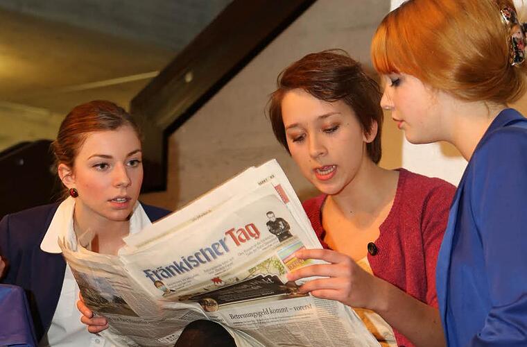 Was im Sketch zur Auftaktveranstaltung des "Klartext"-Projektes humorvoll dargestellt wurde, griff Gertrud Glössner-Möschk, Leiterin der Lokalredaktion Bamberg, in ihrer Ansprache wieder auf: Für was braucht man noch eine Zeitung? "Weil sie den Lesern Orientierung gibt", beantwortete sie die Frage. Die Zeitung schlage den Weg durch den Informationsdschungel und lasse den Leser nicht ratlos zurück. Vor allem bringe eine Heimatzeitung Nachrichten aus der unmittelbaren Umgebung - von Profis recherchiert.
