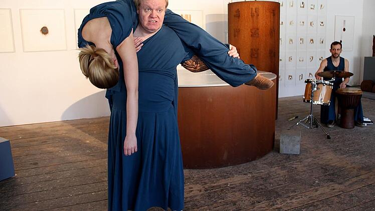 Doch keine Angst, den Tragödienstoff lockern immer wieder Ironie und Witz auf, wobei die tiefere Bedeutung nicht verloren geht. Dafür sorgt die verwendete Textfassung. Die stammt vom Klavierkabarettisten Bodo Wartke, der in der Region u. a. als Moderator von "Songs an einem Sommerabend" bekannt geworden ist. Wartke spielt in einem Soloprogramm alle Rollen des antiken Dramas selbst und musiziert noch dabei. Etwas größer ist die Besetzung des TiG schon, wobei Jóhannes Klütsch am Schlagwerk dezent und doch energisch die schrecklichen Ereignisse begleitet.