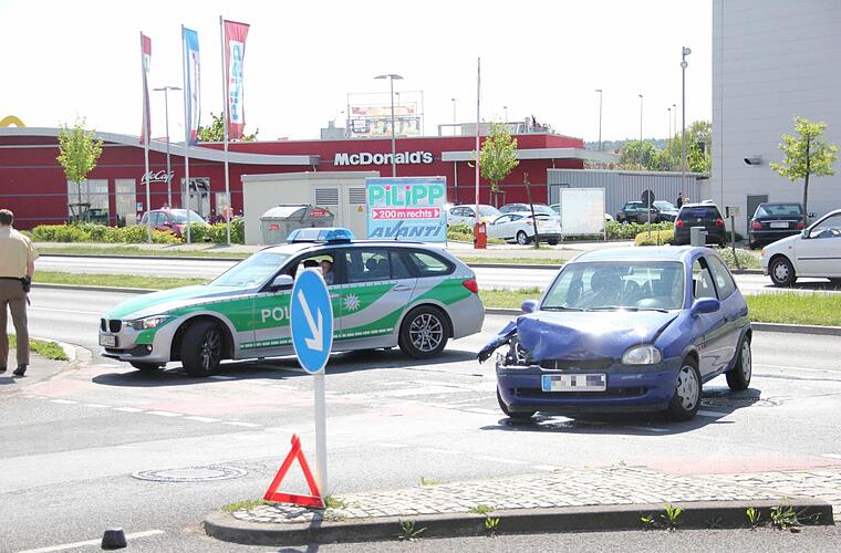 Beim Linksabbiegen vom Berliner Ring in die Gutenbergstraße übersah am Mittwochnachmittag ein Lkw-Fahrer einen entgegenkommenden Opel-Fahrer. Beim Zusammenstoß wurde der Opel-Fahrer leicht verletzt, an den Fahrzeugen entstand ein von der Polizei geschätzter Gesamtsachschaden in Höhe von 3500 Euro.