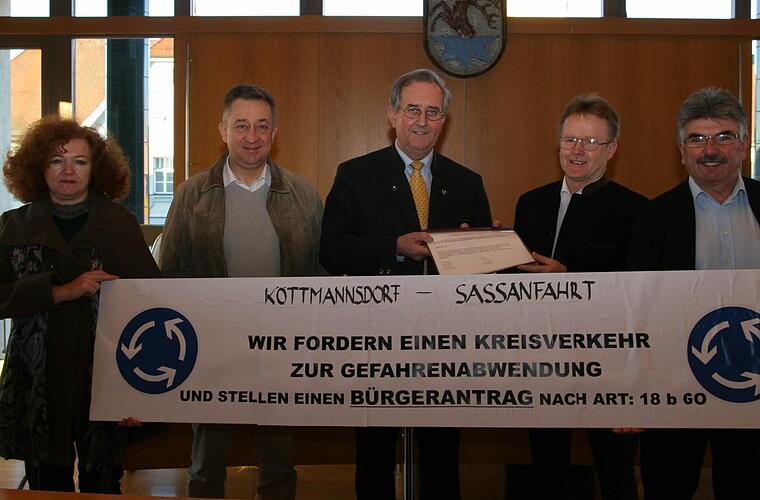Gewiss ist: Wenn an der Kreuzung zwei Schwerstverletzte zu beklagen wären, stiegen die Chancen, bald einen Kreisverkehr auf der Staatsstraße bei der Einmündung von Köttmannsdorf zu erhalten. Dass es überhaupt erst zu Unfällen mit Blutzoll kommt, möchte eine Initiative von Bewohnern der westlichen Hirschaider Ortsteile verhindern: 120 Frauen und Männer haben bereits einen Bürgerantrag auf Errichtung eines Kreisverkehrs für die Kreuzung der Staatsstraße 2260 mit der Kreisstraße nach Trailsdorf und der Gemeindestraße, die Köttmannsdorf an das überörtliche Straßennetz anschließt, unterschrieben.