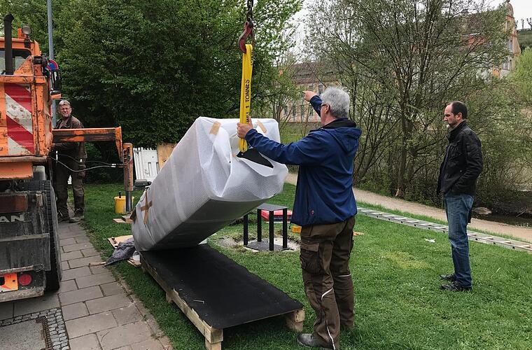 Den Portugiesen kennen viele Bamberger schon durch sein Kunstwerk in St. Stephan oder im Wirtshaus "Eckerts" an der Oberen Mühlbrücke. Bald werden 13 Werke von Rui Chafes die komplette Altstadt von Bamberg prägen - ein besonderes Geschenk im Jahr des 25. Welterbejubiläum. Die offizielle Eröffnung ist am 12. Mai, doch bereits ab heute werden die Werke aufgestellt - los ging es gleich am frühen Morgen am Schiffbauplatz.