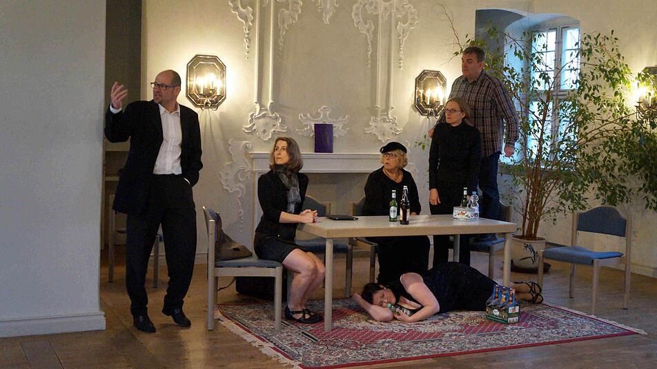 Welch herrschaftliches Ambiente für einen "Leichenschmaus": Im Unteren Schloss soll ab Freitag Fitzgerald Kusz' "Letzter Wille" Zuschauer amüsieren, aber auch erschaudern lassen. Schließlich spiegelt die abgründige Komödie zum Thema "Erben & Sterben" die Verlogenheit unserer Gesellschaft. Das reizte die Mitglieder des Bühnentreffs Bischberg an der Thematik. Wobei die Amateurtheatertruppe mit dem Stück neue Wege geht und erstmals unter der Regie von Heidi Lehnert im Rampenlicht steht.