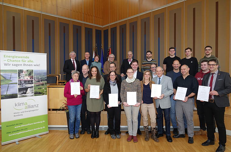 „Alle eingereichten Projekte tragen zum Schutz der Umwelt und des Klimas bei und sind ein wichtiger Schritt Ressourcen einzusparen. Wir freuen uns über zahlreiche weitere Nachahmer“, betonten Landrat Johann Kalb und Bürgermeister Jonas Glüsenkamp, Geschäftsführer der Klima- und Energieagentur Bamberg, bei der Urkundenübergabe an die Preisträger.