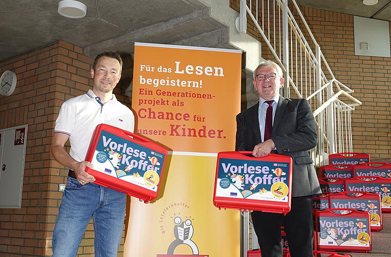Insgesamt 21 Vorlesekoffer, jeder etwa 170 Euro wert und gefüllt mit aktuellen Büchern für verschiedene Altersstufen, werden demnächst an all jene Grund- und Mittelschulen weitergegeben, an denen die individuelle Leseförderung nach dem Mentor-Prinzip stattfindet.