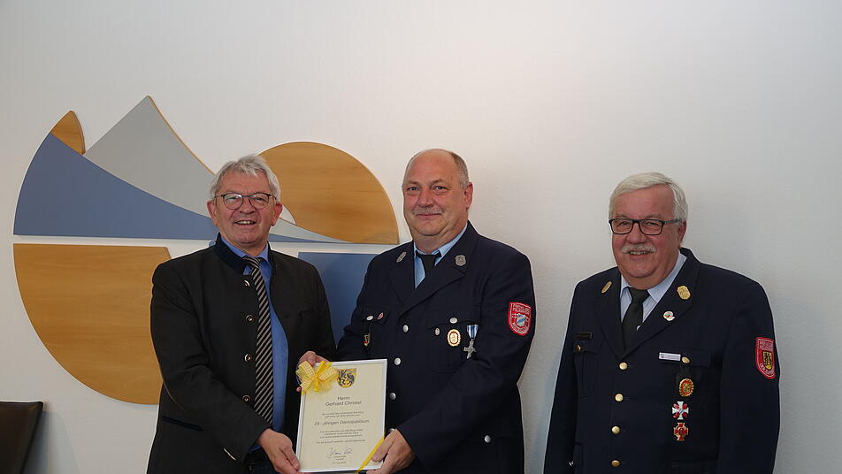 Gerhard Christel wurde für sein 25 jähriges Dienstjubiläum geehrt. Der Ausbilder der Atemschutzgeräteträger des Landkreises Bamberg erhielt dabei von Landrat Johann Kalb großes Lob.