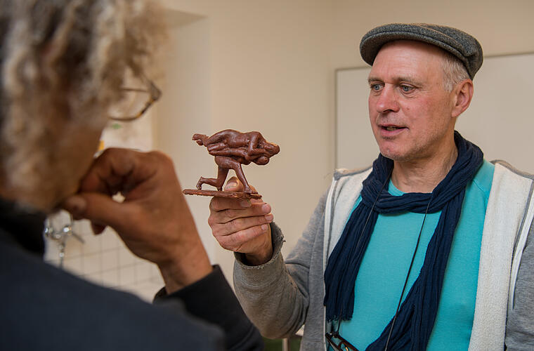 Aufgestellt werden soll die 2,50 Meter hohe Bronzeplastik des Bamberger Künstlers Adelbert Heil direkt am Radweg zwischen Bamberg und Strullendorf in der Nähe der sogenannten Rentnerruh. Die Erarbeitung eines Kunstwerks als Bronzeguss ist ein langwieriger und aufwendiger Prozess. Es muss vom Künstler für den Guss ein 1:1-Modell aus Gips angefertigt werden. Adelbert Heil hat dafür ein Trägergerüst aus Stahl in seinem Atelier in Kirchaich geschweißt. Darüber modelliert er aus Holz, Jute und Gips die spätere Form. Dieser Arbeitsgang dauert mehrere Monate, da die Oberfläche in allen Einzelheiten komplett durchgearbeitet sein muss. Denn am gegossenen Kunstwerk sind dann eigentlich keine Veränderungen mehr möglich.