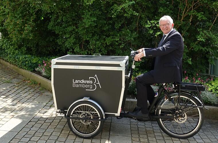 Das Landratsamt Bamberg stellt seinen Mitarbeitern ein E-Lastenfahrrad für Dienstfahrten zur Verfügung. Die umweltfreundliche Anschaffung fördert nachhaltige Mobilität.