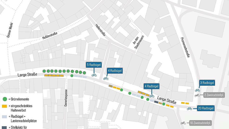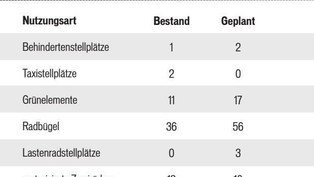 So beendet Grünen-Stadtrat Stefan Kurz die Diskussion mit den Worten: "Wir stimmen heute nicht über ein Gesamtkonzept ab, sondern über einen Kompromiss, eine Zwischenlösung." Diese sieht eine Reduzierung der Lieferstellmöglichkeiten von 25 auf 14 und die Abschaffung der zwei Taxi-Stellplätze vor - zugunsten von unter anderem mehr Pflanzenkübeln, Radbügeln und Lastenradstellplätzen.