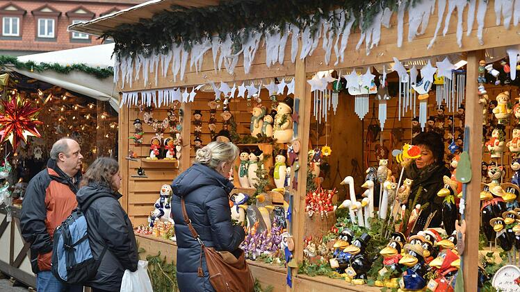 Viele hetzen vorbei, quetschen sich mit Tüten in den Geschäften und haben "keine Zeit". Aber ein paar einzelne fallen in dem Gewusel auf - weil sie zwischen den Buden schlendern, Georgine und Karl-Heinz Härtel zum Beispiel.