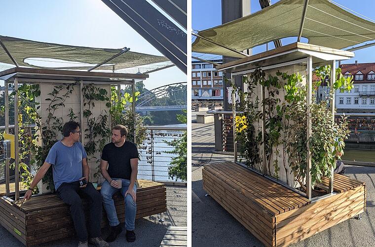 Bereits jetzt zeigt ein Anschauungsobjekt an der Kettenbrücke, Ecke Heinrichsdamm, welche Vorteile Dach- und Fassadenbegrünungen haben. Dieses Objekt mit seiner vertikal begrünten Wand und Pergola lädt mit einer Sitzbank auch zum Verweilen ein. Hier können Interessierte bis 3. Oktober 2024 die positiven Effekte der Begrünung hautnah erleben und sich inspirieren lassen.