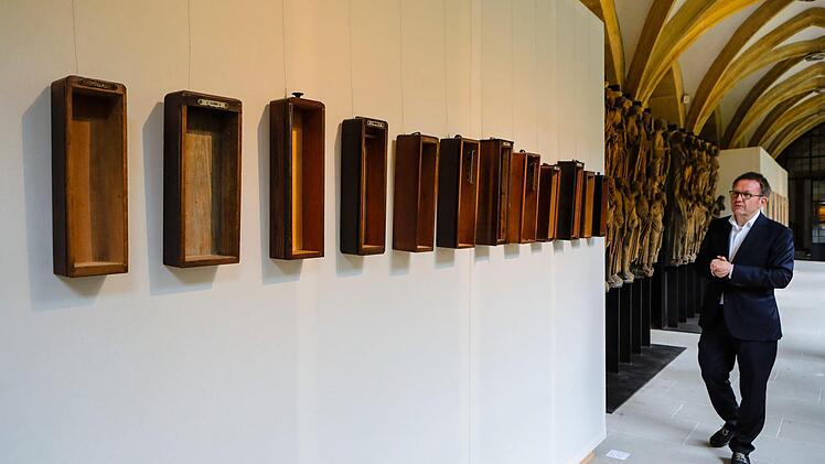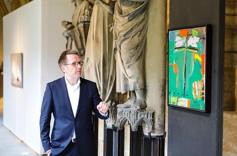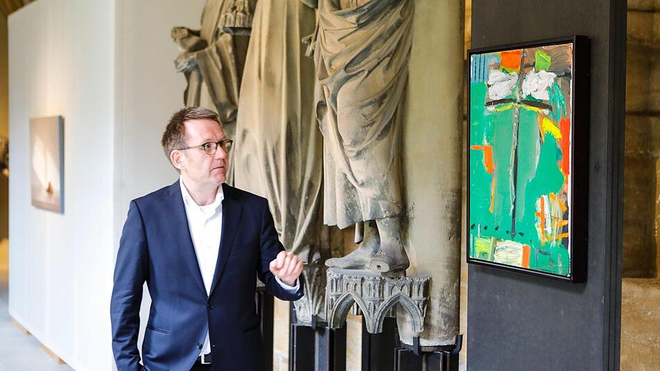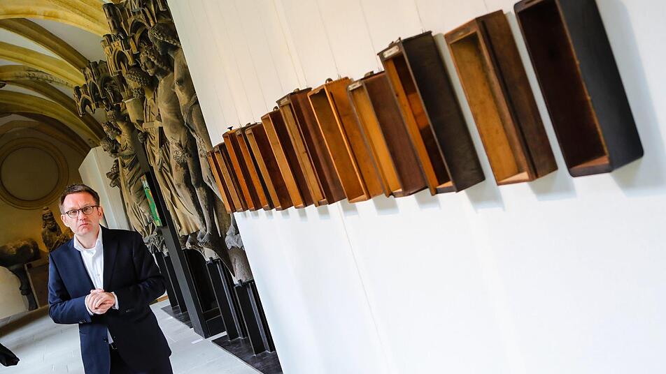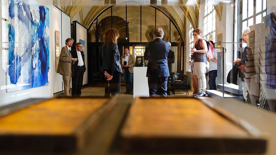 "Die evangelische Kirchengemeinde St. Stephan ist auf uns zugekommen mit der Bitte, diese Ausstellung in unserem Haus zeigen zu dürfen", erklärte Museumschef Holger Kempkens bei einem Rundgang für Pressevertreter. "Luther reicht nicht" wandert nämlich seit eineinhalb Jahren durch Bayern, initiiert vom Arbeitskreis Kirche und Kunst/Unterfranken der Evangelisch-Lutherischen Kirche in Bayern/ELKB, sowie des Kunstreferats der Diözese Würzburg. Die Kuratoren aus dem Arbeitskreis, Pfarrer Markus Geißendörfer (St. Lukas Aschaffenburg) und Architektin Barbara Bauner (Kirchengemeindeamt Würzburg), begleiteten mit Holger Kempkens und Domkapitular Norbert Jung, Leiter der Hauptabteilung Kunst und Kultur im Erzbischöflichen Ordinariat, die Journalisten durch die Schau.