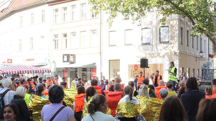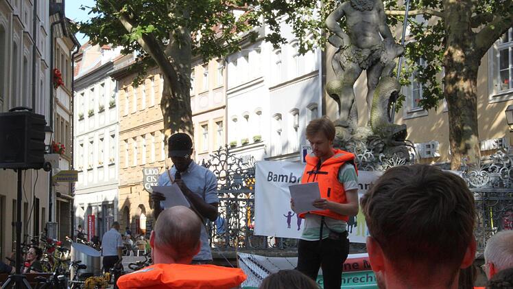 "Die Europäer ziehen sich raus aus der Seenotrettung!", kritisierte Karin Stein von der Organisation Sea-Eye als Rednerin bei der Mahnwache Asyl am Montag. Am Gabelmann trafen sich diesmal rund 150 Personen, teilweise bekleidet mit Schwimmwesten, um sich mit Seenotrettern und Geretteten solidarisch zu zeigen.