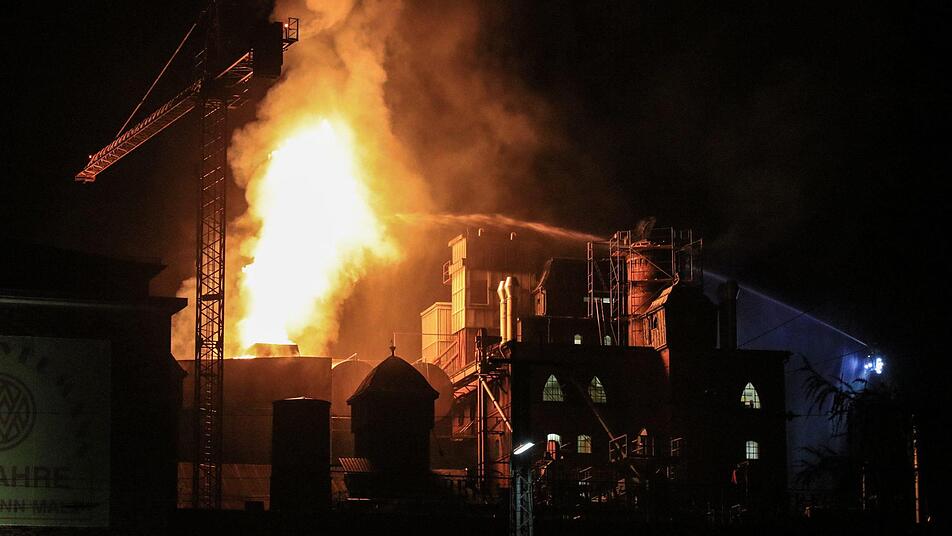 In der Malzfabrik Weyermann kämpften Einsatzkräfte der Feuerwehr am Donnerstagmorgen stundenlang gegen die Flammen. Ein in der Darre der Fabrik ausgelöstes Feuer griff auf den Dachstuhl des Gebäudes über.