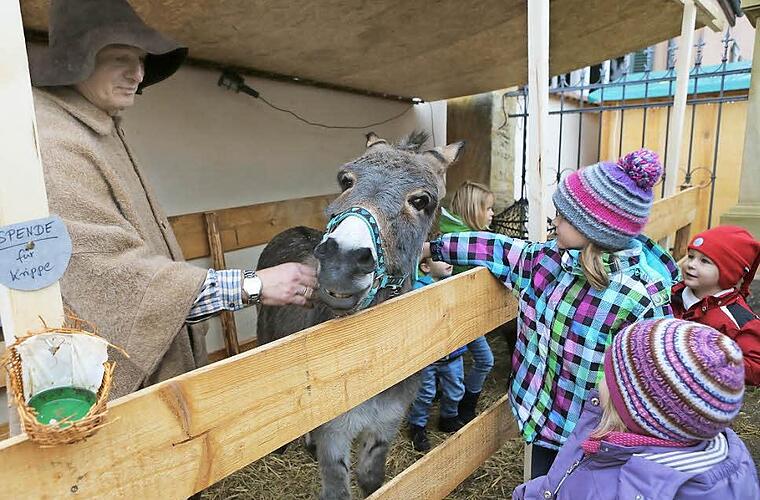 Dicht gedrängt standen die Besucher in der frisch renovierten Johanniskapelle am Stephansberg, als Oberbürgermeister Andreas Starke den Interkulturellen Kunsthandwerker-Weihnachtsmarkt offiziell am Samstagmittag eröffnete. Natürlich hatte das Stadtoberhaupt wohlfeile Worte parat über die "lebendige Weihnachtsmarkttradition in Bamberg" und über die "besondere Weihnachtsatmosphäre, die auch Touristen anzieht". Doch Starkes Freude über das Engagement von Organisatorin Bettina Kröner und von rund 30 Ausstellern bekam rasch eine tierische Note: "Als Lokalpolitiker hofft man, dass die Rolle des Esels schon vergeben ist", spielte der OB launig auf denjenigen an, der ihn am Eingangstor zähnebleckend begrüßt hatte: Esel Max, der heimliche Star des Weihnachtsmarktes, der mit den Schafen Marie und Luise eine lebendige Krippe abgab.