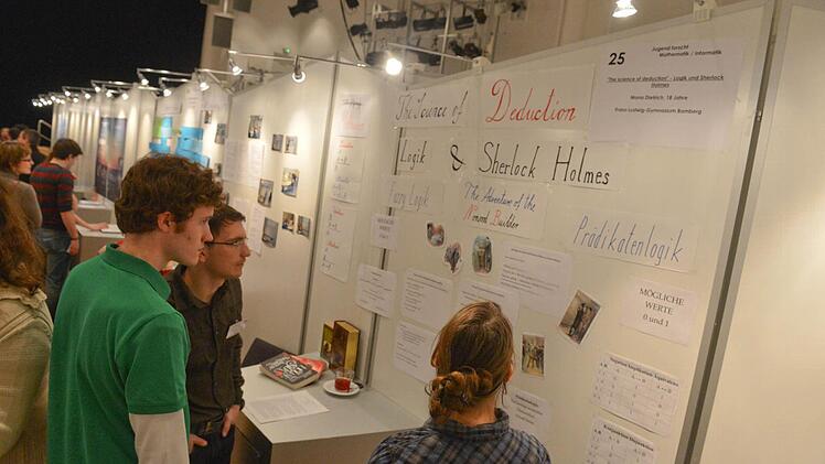 Auch Bamberger Schüler des Franz-Ludwig-Gymnasiums waren wieder vertreten. So stellte die 18-jährige Mona Dietrich im Bereich Mathematik ihr Projekt "Logik und Sherlock Holmes" vor. "Als Mensch ist man im Idealfall in der Lage, die Metaebene eines Textes in eine Zahl umzusetzen", sagt sie. Das ist dann auch Inhalt ihrer Idee: "Sherlock Holmes ist immer als der Meisterdetektiv bekannt, der immer alle Fälle so brillant gelöst hat.