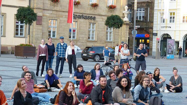 Musik der Sängerin Dota schallt über den Platz. Anders als vielleicht erwartet, geht es aber nicht nur ums Klima: Das Abendprogramm hat mit Poetry-Slam-Beiträgen von Rahel Bennisch und Yannik Ambrusits zum Thema Reisen - "Hier will ich für immer bleiben! Von hier könnte ich Gedichte schreiben!" - sowie von Isabell Sterner über den Drang, sich in klassische Beziehungsgefüge zu pressen und daran zu scheitern, kulturelle Seiten. Und auch Zauberkünstler Pascal Thieme lässt sich die Chance auf einen Auftritt nicht entgehen. Das junge Publikum, das mit Decken und Kissen den Platz zum Freiluft-Wohnzimmer gemacht hat, spendet viel Applaus und auch den ein oder anderen Euro an die Kulturschaffenden.