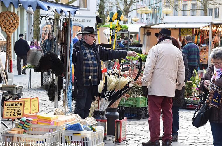 Bamberger schätzen Beratung auf dem Markt Dieses Gefühl hat auch Xaver Michl. Mit seiner Frau kommt er aus Dasing seit über 15 Jahren nach Bamberg. Das eine Highlight gibt's bei ihnen eigentlich nicht. Die Leute kaufen querbeet. Haarbürsten aus Handarbeit und "Oliven-Holz-Zeug" kaufen die Leute seit Jahren "immer mehr".