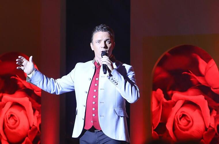 Wie gut, dass gleich darauf mit Maximilian Arland der Stargast auf die Bühne tritt und mit dem Titellied seines aktuellen Albums "Liebe in Sicht" das Publikum langsam auftauen lässt. Der aus einer wahren Schlagerfamilie stammende Arland performt einige Lieder aus seinem Jubiläums-Werk und seinen neuesten Song "Verliebt in Berlin". Auch das von seinem Großvater Rolf Arland für Roy Black komponierte Lied "Ganz in weiß" darf nicht fehlen.