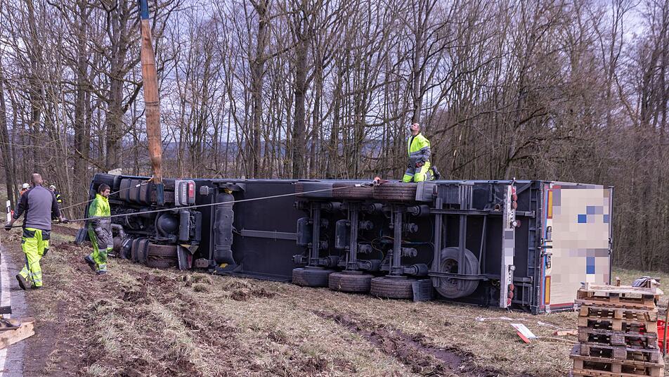 Fleischtransporter kippt im Kreis Bamberg um