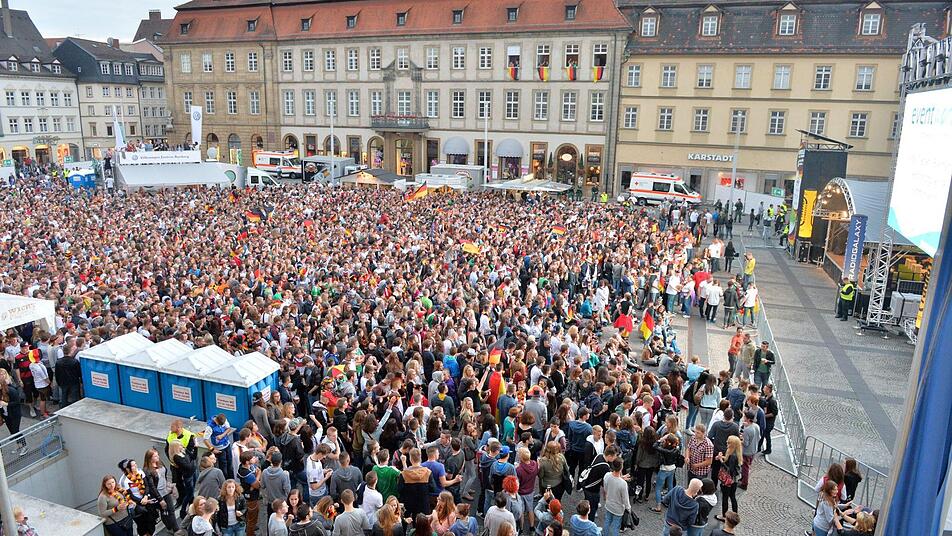 Fahrradmesse, Welterbelauf, Märkte usw. können ja trotzdem wie gehabt auf dem Maxplatz stattfinden nur um den Brunnen herum. Für Public Viewing bieten sich ja auch andere Flächen an - z.B. Parkplatz bei der Brose Arena oder die Arena selbst. Auf der Erba Insel oder im Hain könnte sich ja auch ein Plätzchen für Public Viewing finden. Die anderen Veranstaltungen (Weinfest und Bluesfestival) können sich ja um den Brunnen herum arrangieren.
