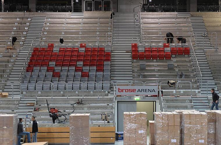 Es war eine der größeren Umbaumaßnahmen in der Brose Arena, die nun in einem ersten Schritt begonnen hat. Zunächst wurden die Stühle auf der Westtribüne inklusive der VIP-Sitze ausgetauscht. Nach de letzten Heimspiel der Bamberger im alten Jahr gegen Phoenix Hagen rückten die Arbeiter an und demontierten die alten blauen Stahlrohr-Sitze. Für kurze Zeit entstand so "die größte Stehplatztribüne der Basketball-Bundesliga", wie es ein User auf der Facebook-Seite von infranken.de formulierte.