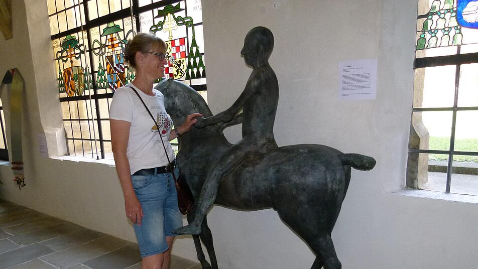 Währenddessen stand Maren Rieder staunend vor dem Neuzugang dieses musealen Hauses am Domberg: eine Bronzeskulptur namens "Cavaliere" (Reiter), inspiriert vom "Bamberger Reiter", wie auf der Infotafel zu lesen ist: "Der hat was, der erinnert mich an den Apoll von Lüpertz!", lachte Maren Rieder. Der "Cavaliere" ist eine Schenkung aus dem Nachlass des italienischen Künstlers Marino Marini (1901 bis 1980) - aus Verehrung von Bamberg dem Diözesanmuseum übereignet.