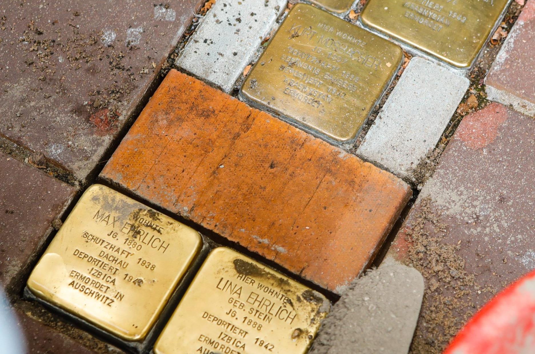 Hier wohnte das Ehepaar Ehrlich, bis es von den Nazis verschleppt und ermordet wurde. 156 Stolpersteine erinnern mittlerweile in Bamberg an Juden, die Opfer des NS-Regimes wurden.