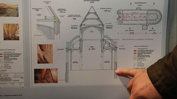 Der Grund: Die Ursachen liegen tiefer. Nachdem die komplette Bausubstanz untersucht worden war, machte Statiker Anton Landgraf drei Ursachen aus: "Erstens haben wir eine gotische Kirche, die in verschiedenen Bauphasen errichtet wurde. Dabei entstanden bautechnische Schäden.