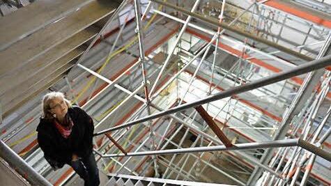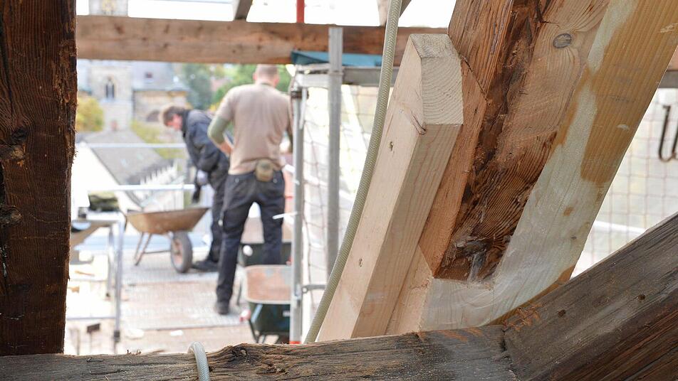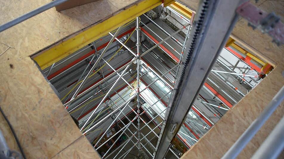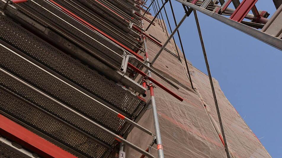 Mit dem Dach beginnen die Arbeiter, dann wird "von oben nach unten saniert", wie Architektin Huber erklärt. Dann wird das Gerüst nach und nach kleiner - wie auch die Lärmbelästigung für die Anwohner.
