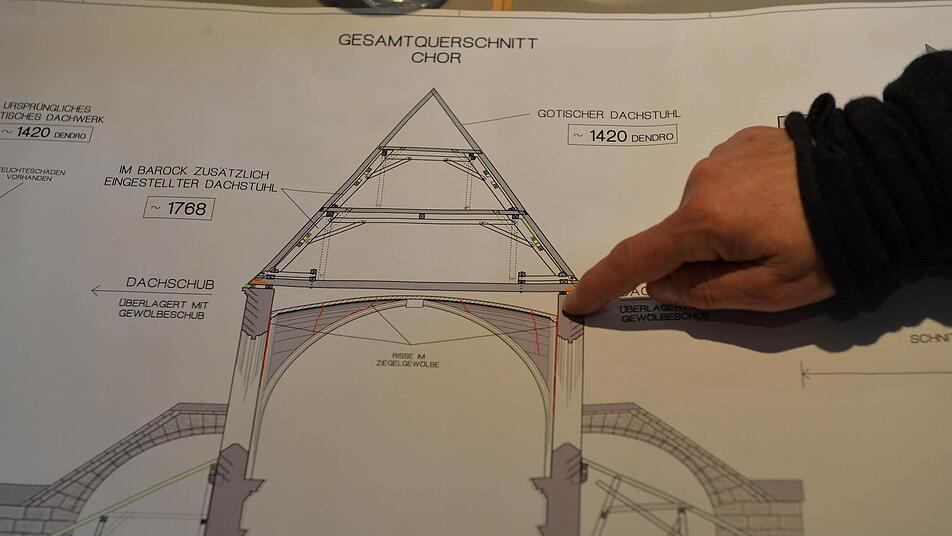 Die Ursache: Die gotische Kirche wurde in verschiedenen Bauphasen errichtet, wodurch bautechnische Schäden entstanden. Vor allem aber wurde bei der Barockisierung der Kirche massiv in den ursprünglich gotischen Baustiel eingegriffen.
