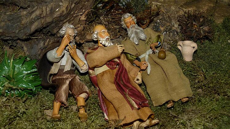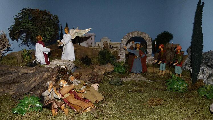 Immer etwas Neues "Der wahre Krippler lässt sich immer etwas Neues einfallen", kommentiert Wilfried Kuntke auch "Jesus am Ölberg", dem die schlafenden Jünger zu Füßen liegen. Die Figuren sind Frühwerke des bekannten Bamberger Schnitzers Max Huscher, die Helmut Zahl (Kemmern) in eine neue Kulisse gestellt hat.