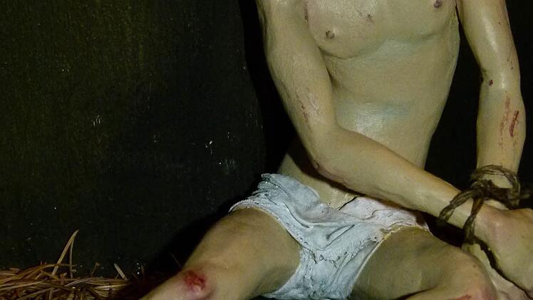 Seltene Passions-Darstellungen berühren. Der Regensburger Arzt und Krippenkünstler Thomas Huber hat beispielsweise einen "Christus im Elend" aus Ton modelliert, dessen Verlorenheit im düsteren Kerker greifbar ist. Peter Reus aus Altendorf bei Nürnberg versetzt die "Kreuztragung Christi" in eine Massenszene mit über 50 Figuren.