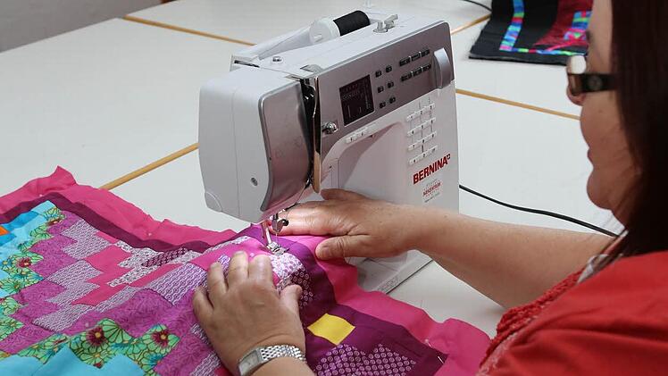Erst dann kann endlich das Quilten beginnen. "Der eigentlich schönste Teil", da sind sich die Damen einig. Gefragt ist jedoch auch hier Geduld und Konzentration. Mit der Nähmaschinen werden die Schichten und Teile zusammengenäht, auch Verzierungen und Muster können nach Belieben noch eingearbeitet werden.
