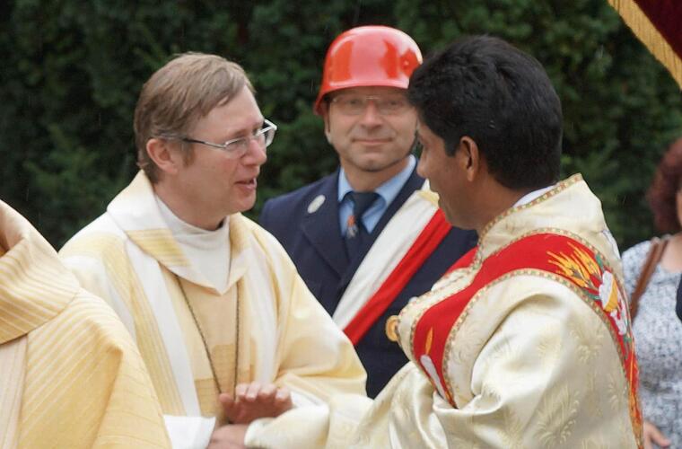 Alles war so schön geplant. Um 16.30 Uhr sollte der Gottesdienst zur Verabschiedung von Pater Charles John Porimattathil in der Pfarrkirche St. Peter und Paul in Zapfendorf beginnen, nach einem Festzug um die Kirche. Doch wenige Minuten zuvor ging ein heftiger Regenschauer über Zapfendorf nieder, der Festzug fiel buchstäblich ins Wasser - und nicht nur die Priester, Ministranten, Kinder und Fahnenträger, sondern auch viele Gottesdienstbesucher, die am Festzug teilnehmen wollten, waren vollständig durchnässt.