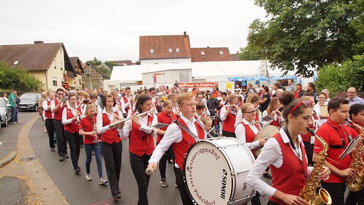 Dreifachen Grund zum Feiern hatte der Ort am Wochenende: Kirchweih, das 40-jährige Bestehen des "Jugendblasorchesters Pödeldorf" und das Kreismusikfest.