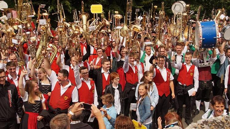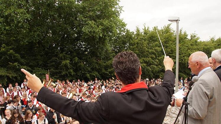 Als Gemeinschaftsstück dirigierte Julius Herion als Chef des Jubelvereins das Stück "Durch's schöne Frankenland".