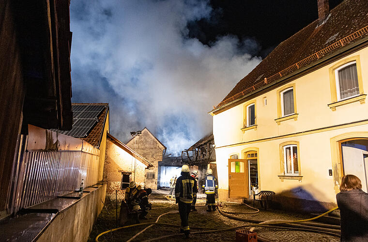 Nur unter "massivem Einsatz von zwei Drehleitern und Innenangriffen konnte vermieden werden, dass das Feuer sich im sehr eng verbauten Ortskern auf Nachbargebäude ausbreitete", erklärt die Freiwillige Feuerwehr Pommersfelden in einem Einsatzbericht. Feuerwehren, die keinen Atemschutz mehr auf den Fahrzeugen hatten, seien von der Feuerwehr Buttenheim mit Leihgeräten des Landkreises Bamberg versorgt worden.