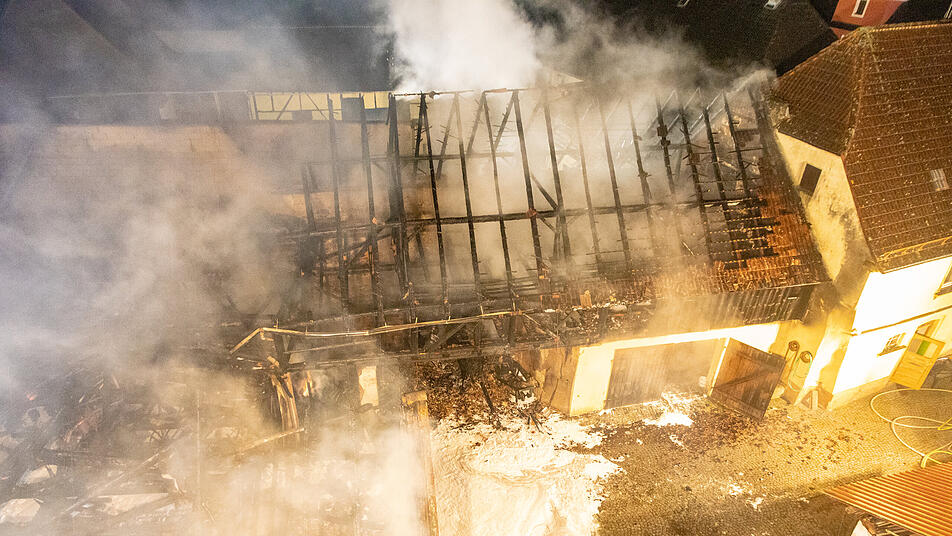Scheunenbrand in Pommersfelden: 250 Einsatzkräfte kämpfen gegen Flammen-Inferno
