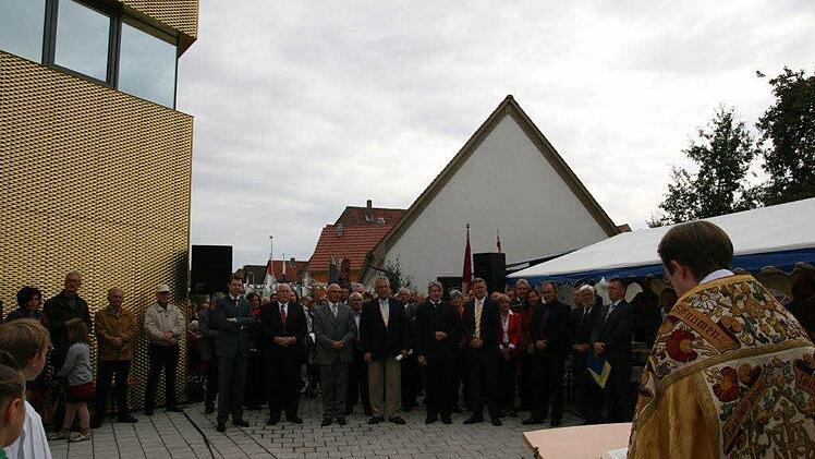 Domvikar Christian Steger, der in St. Wenzeslaus schon den Festgottesdienst zelebriert hatte, übernahm die Segnung des Bürgerzentrums. Dabei erinnerte er an das Gleichnis Jesu von dem klugen Mann, der sein Haus auf Felsen gebaut hat, auf dass es weder vom Wasser weggeschwemmt noch vom Wind umgeweht werden könne.