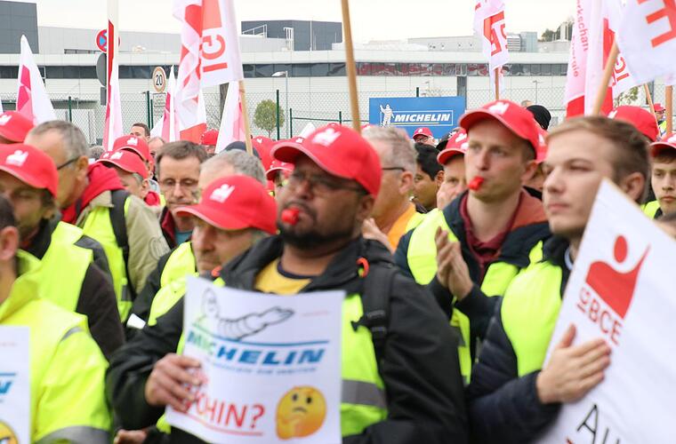 Eiskalten Rechtsbruch werfen die Michelin-Mitarbeiter der Konzernspitze in Frankreich vor. Bei einer Kundgebung protestierten fast 700 Menschen gegen die Schließung.