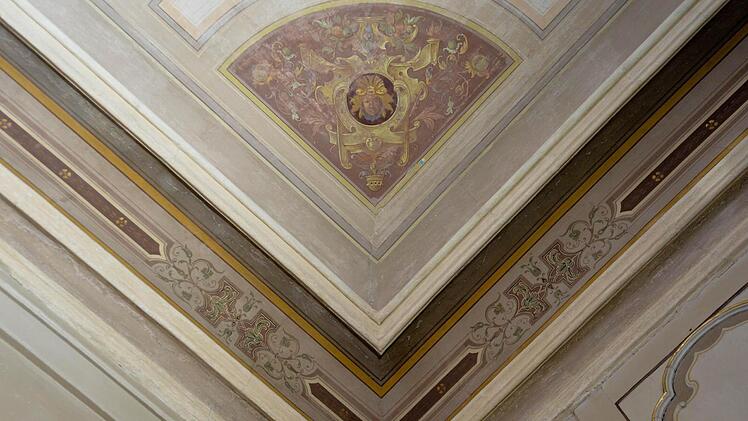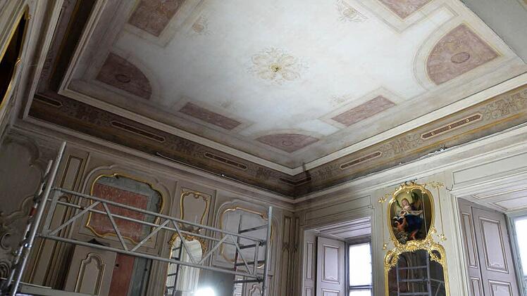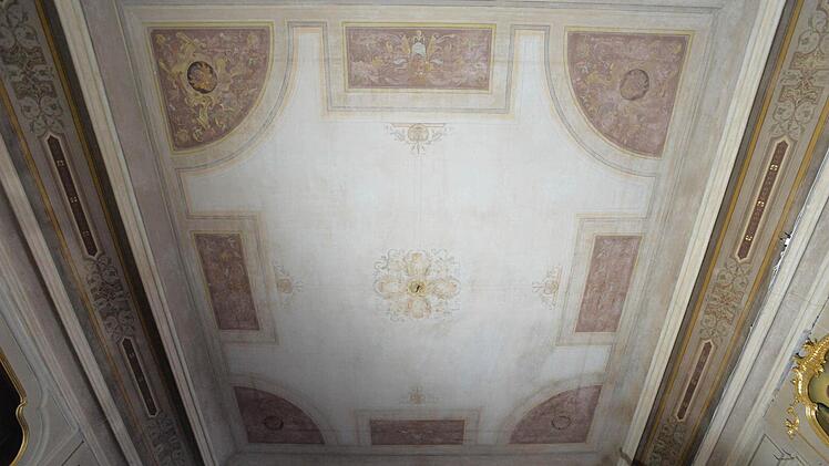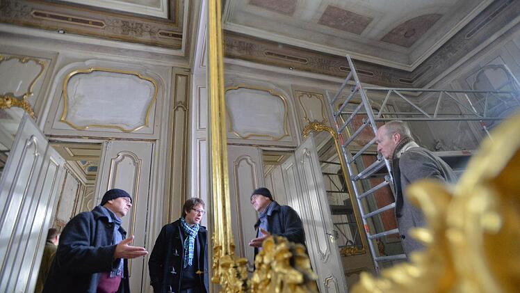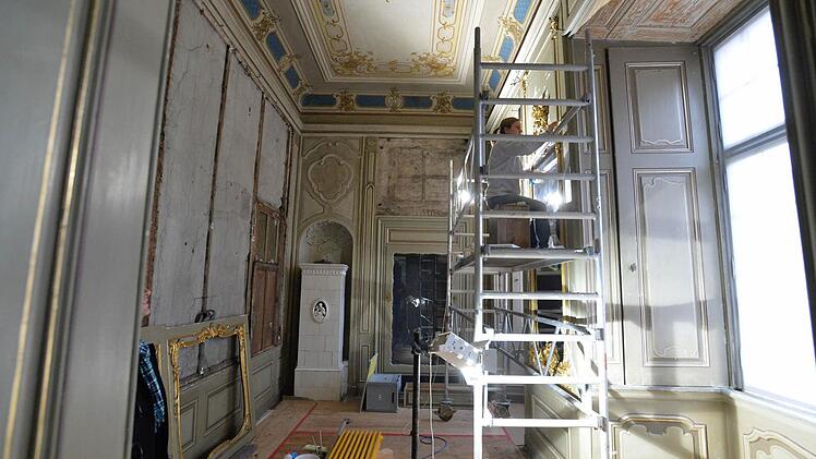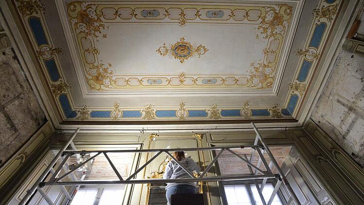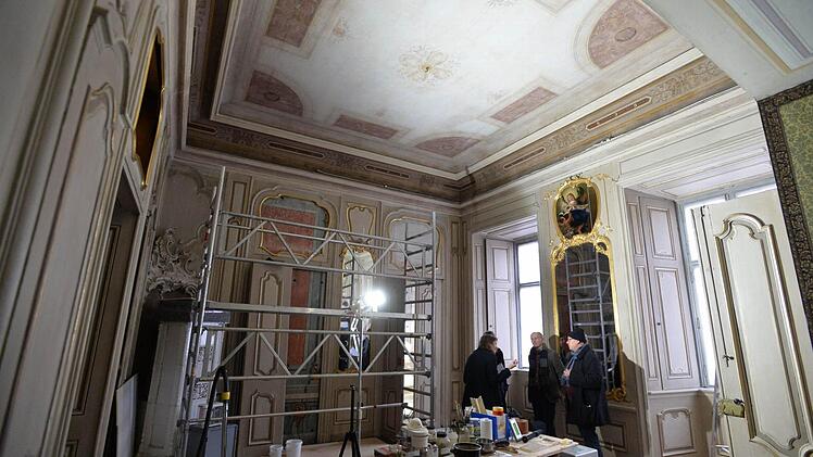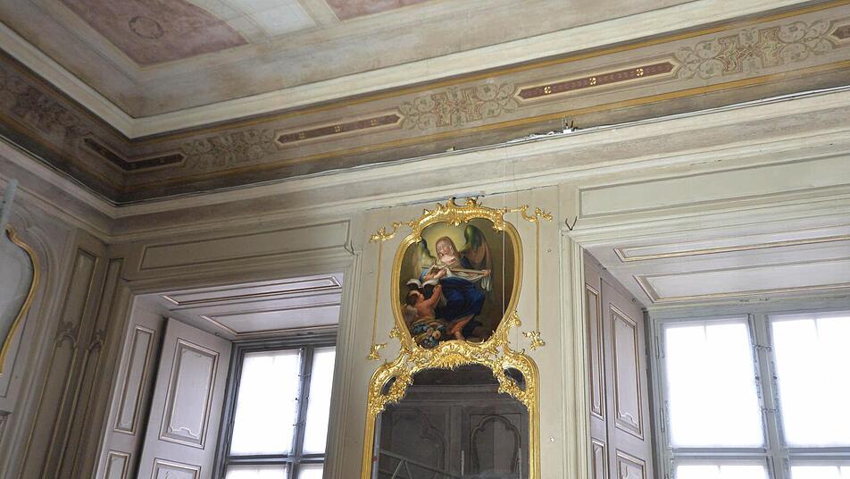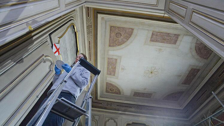 "Unansehnlich wurden die Räume", meint Klaus Häfner als Fachrestaurator der Bayerischen Schlösserverwaltung bei einem Rundgang und blickt an die Decke des früheren Schlafzimmers Amalies, wo dank Reinigung und Retusche Farben und Formen wieder deutlich zum Vorschein kommen.