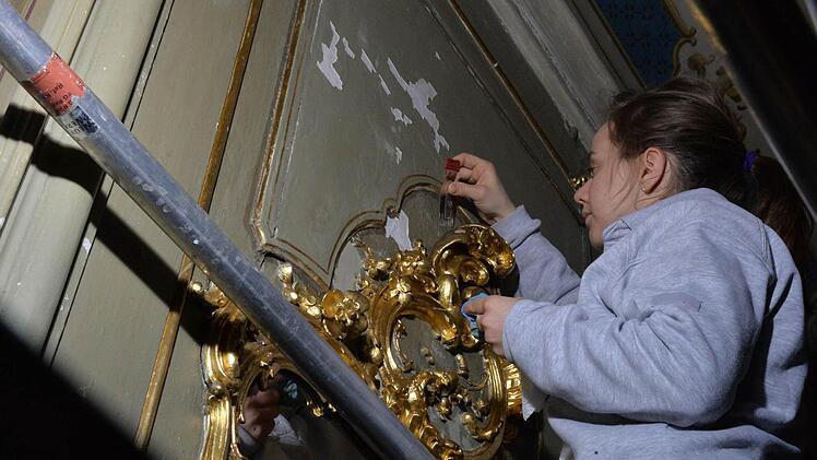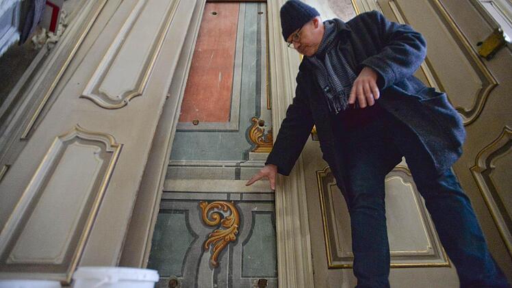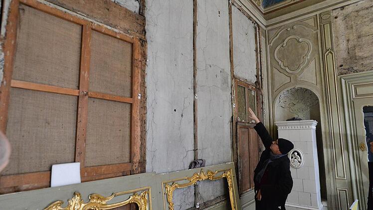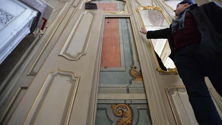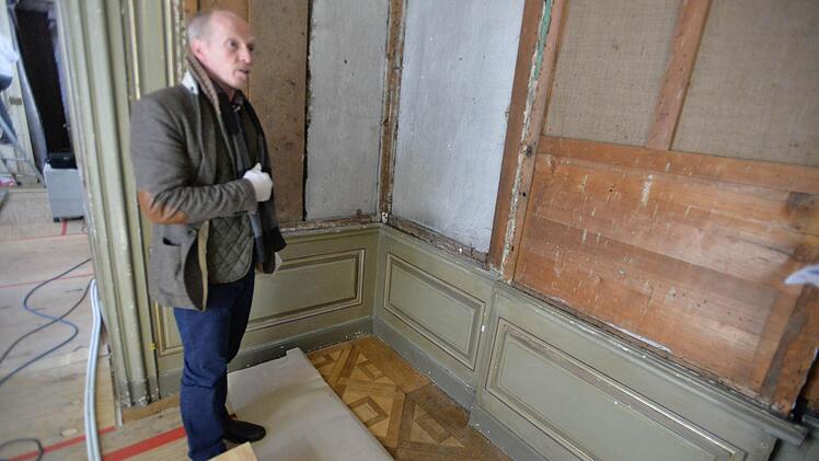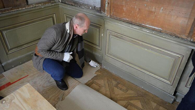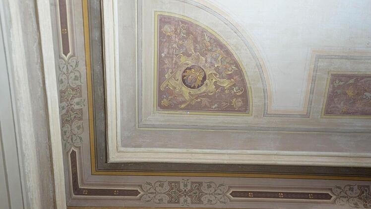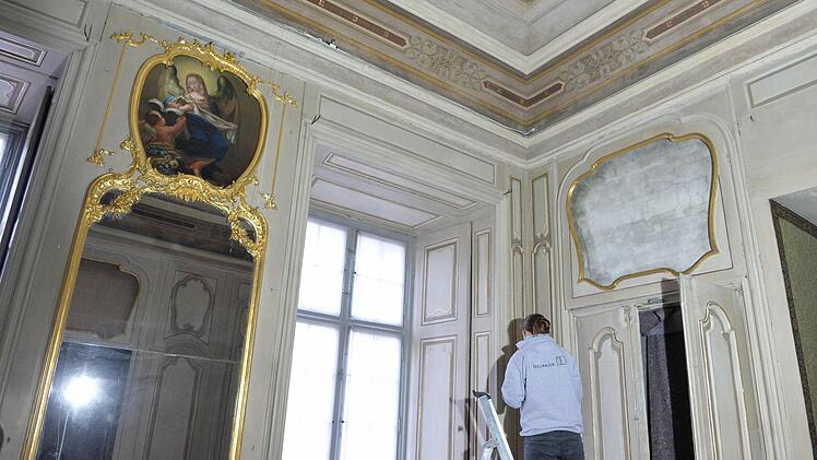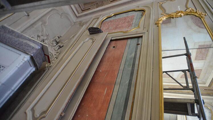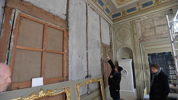 "Unansehnlich wurden die Räume", meint Klaus Häfner als Fachrestaurator der Bayerischen Schlösserverwaltung bei einem Rundgang und blickt an die Decke des früheren Schlafzimmers Amalies, wo dank Reinigung und Retusche Farben und Formen wieder deutlich zum Vorschein kommen.