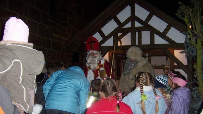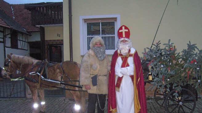 Allen half der damalige Reitverein, organisiert von Anne Scharold, dem Nikolaus auf die "Sprünge". Anne Scharold übernahm mit ihrer Kutsche und den Beifahrerinnen Inge Sebald und Silke Mergner den Transport der Gabenbringer und der Geschenke. Allerdings wird es immer schwieriger eine Kutsche für den Tag zu bekommen, sodasss der Nikolaus immer mal wieder zu Fuß unterwegs ist.