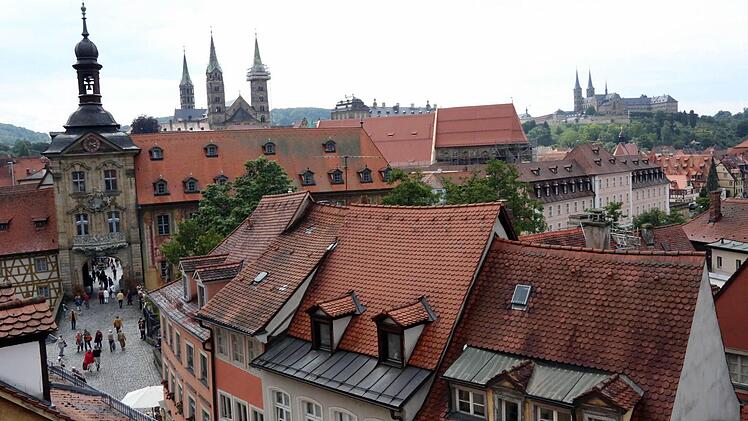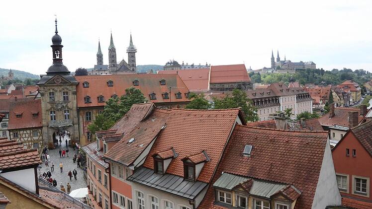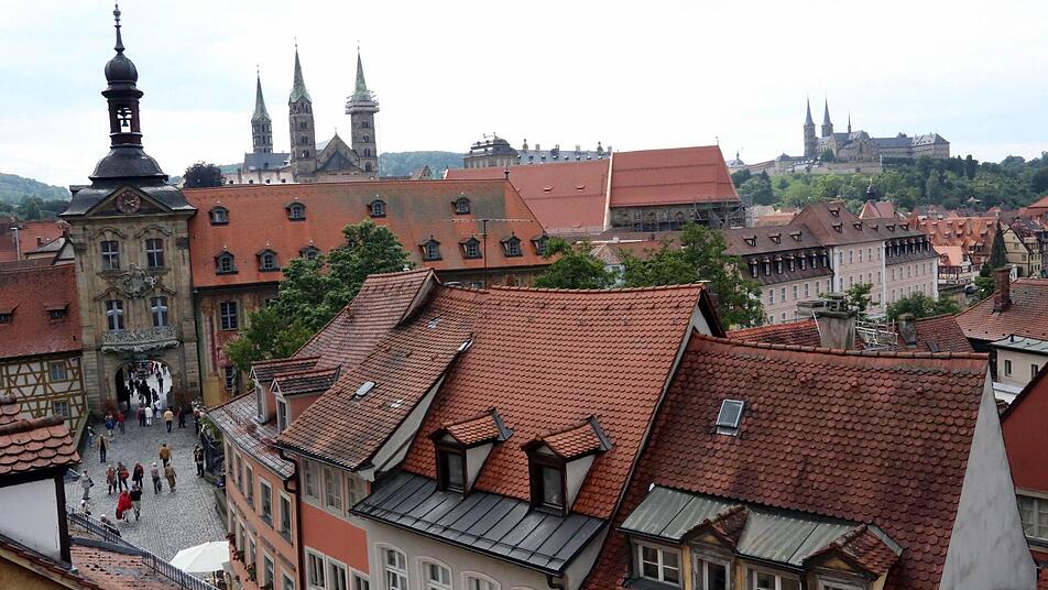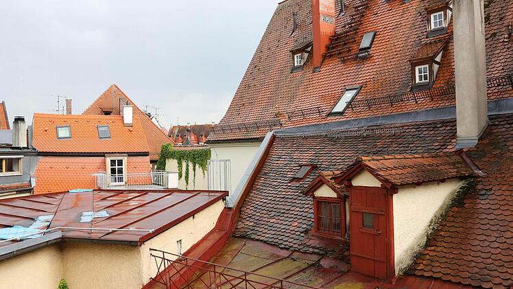Mölter steigt die geschwungene Treppe mit den Holzschnitzereien im Geländer nach oben - sie stammt von etwa 1720/1730. Ganz oben, im Dachstuhl angekommen, öffnet er eine Dachluke - der Blick auf das Kloster Sankt Michael - frei, hinweg über die Dächer der Altstadt. Hier zeigt das Haus sein wahres Alter. Der Architekt streicht über einen Querbalken. "Im Dachstuhl stammt jedes Stück Holz aus dem Jahr 1506. Es hat eine Menge Geschichte miterlebt."