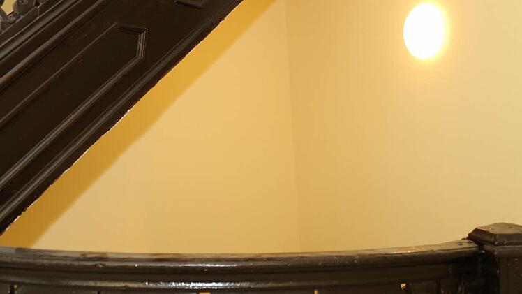 Das zeigt sich an der Badezimmerwand im zweiten Obergeschoss, die nicht ganz bis zur Decke reicht, damit der kostbare Stuck nicht dran glauben musste. Oder am zimmerlangen Pralinenschrank im Erdgeschoss, in den Räumen des Cafés.