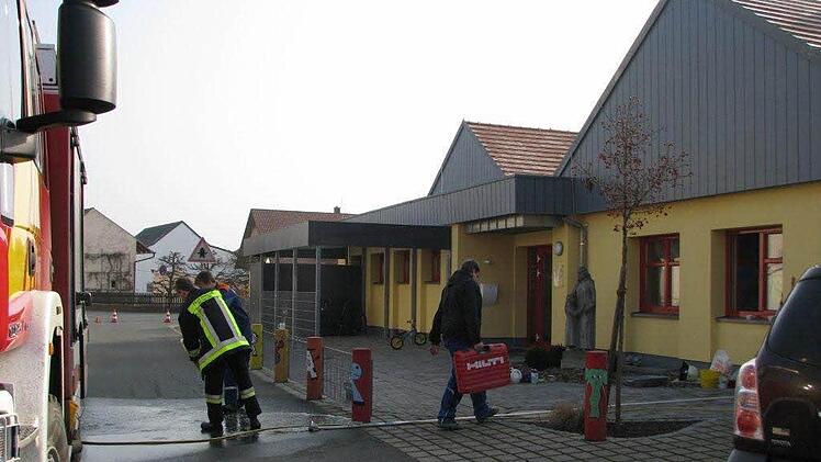 Gleich wurde auch die Feuerwehr alarmiert. Wenig später rückte die Ortswehr sowie der FW Reundorf an, um das Wasser abzupumpen und abzusaugen. Gleichzeitig wurde Mobiliar und Spielzeug in Sicherheit bzw. ins Trockene gebracht. Dabei halfen das Personal und der Gemeindearbeiter.