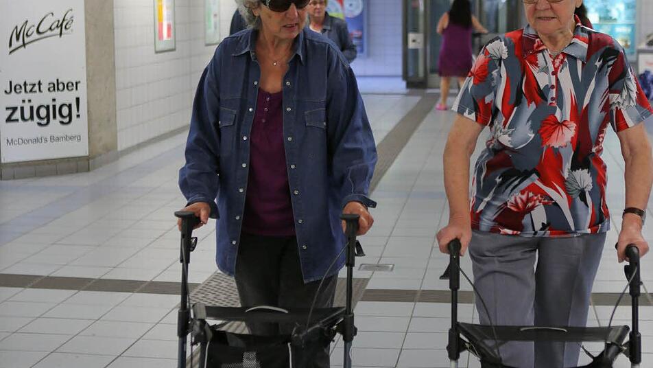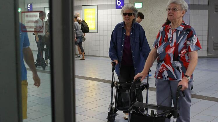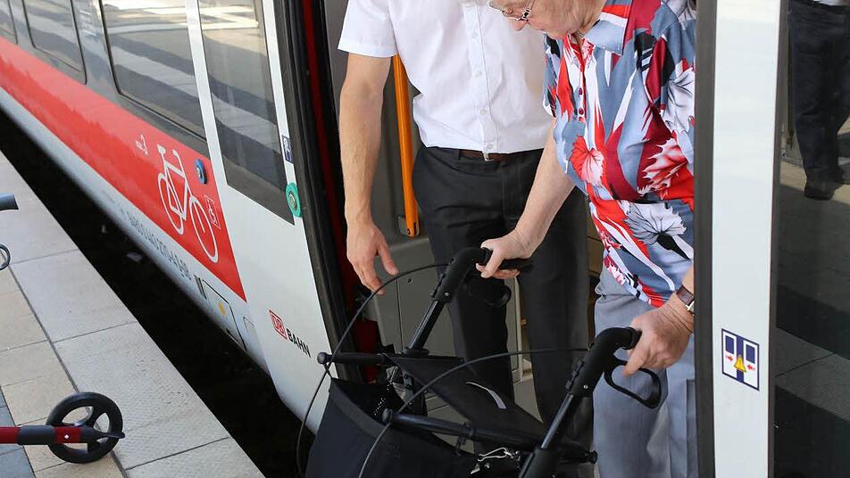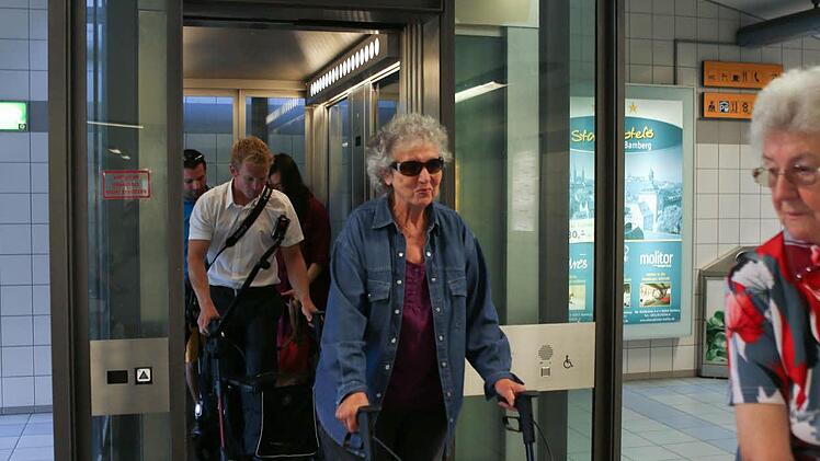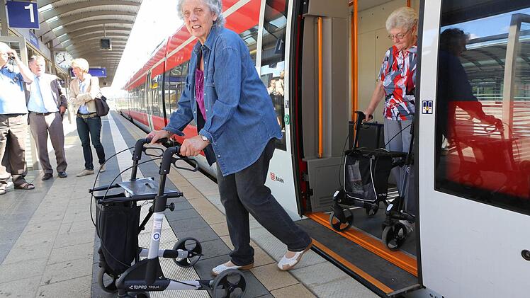 Mit zwei solchen sind die beiden Bamberger Seniorinnen unterwegs. "Damit geht das Busfahren deutlich leichter", sagt Margarete Wagner - und jetzt auch das Bahnfahren. Etwas Unsicherheit bleibt aber. Kommt ein moderner Zug mit Rampe? Oder ein alter Nahverkehrszug mit Treppe und nichtautomatischen Türen?